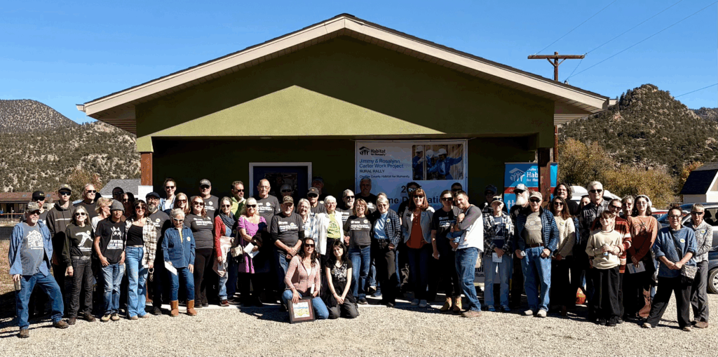 Chaffee County Habitat for Humanity (CCHfH) celebrated the completion of construction on our 26th new home build with a dedication ceremony on October 25th in Nathrop, Colorado, during the inaugural Habitat for Humanity International Rural Rally — as part of the Jimmy & Rosalynn Carter Work Project. Corina Walker was officially welcomed into her new home, surrounded by family, friends, Habitat volunteers, as well as several local, regional, and state government officials.